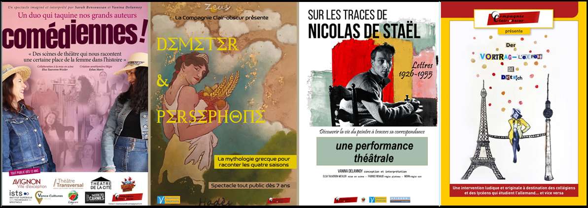 La Compagnie Clair-obscur est une compagnie de théâtre qui vous propose différents spectacles et petites formes théâtrales ainsi que des Ateliers de Lecture à Voix Haute.