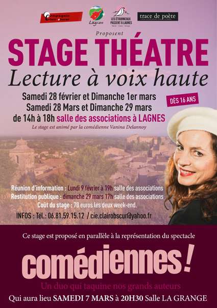 Il s’agit d’un Atelier Théâtre de Lecture à Voix Haute. On y apprend, travaille, le corps, la voix, l’improvisation sous forme d’exercices ludiques et la mise en confiance. Puis et surtout la prise de parole à partir d’un texte écrit.